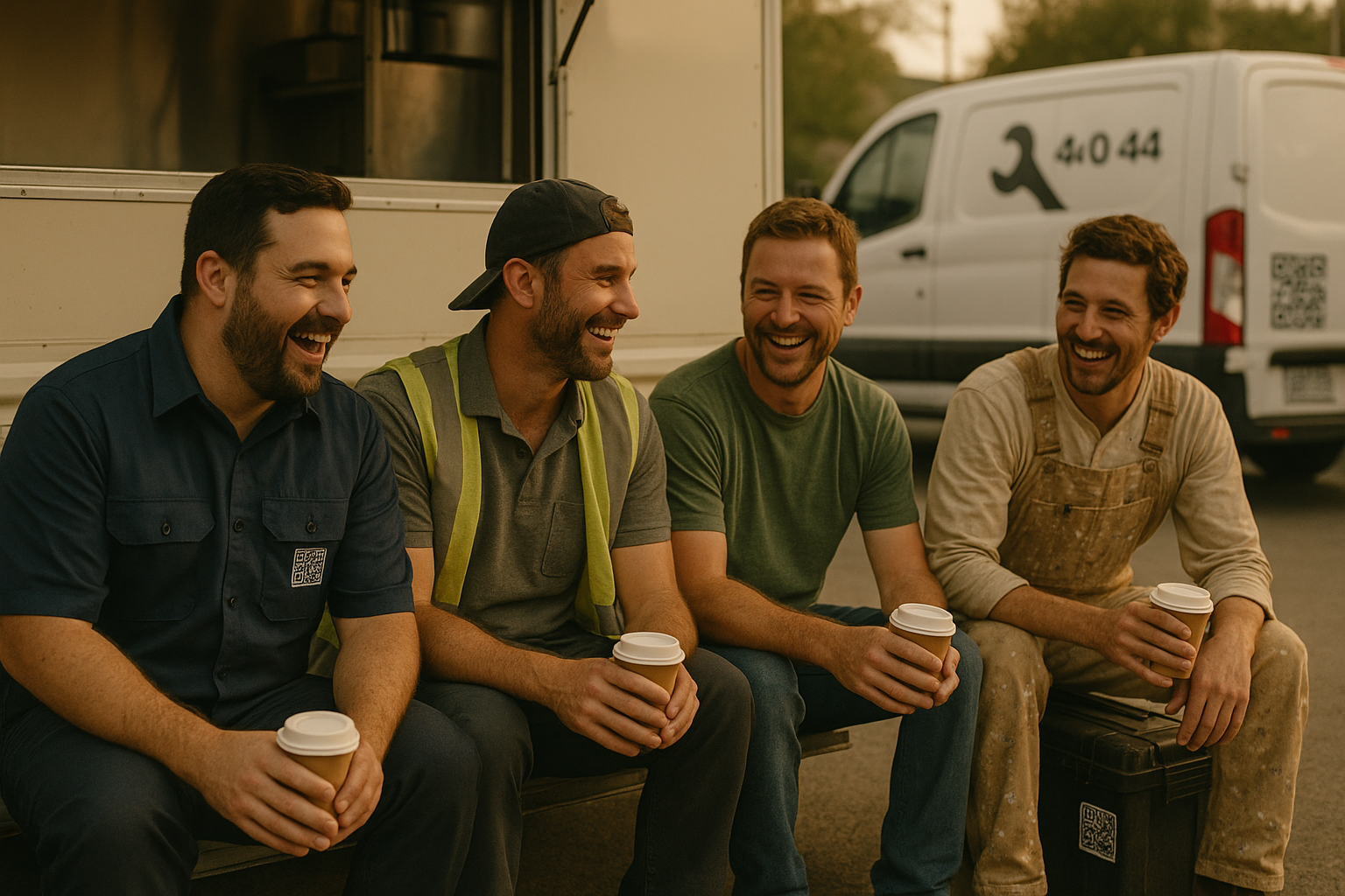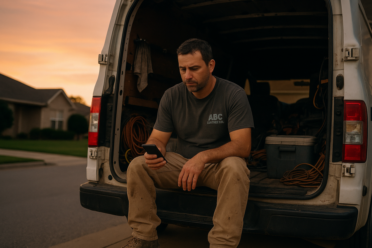 This is what it looks like when the business runs without you glued to your phone. Different trucks, different tools, same calm. They're not checking voicemails. They're not chasing leads. They're drinking coffee at 7am knowing today's jobs are already booked and paid.
